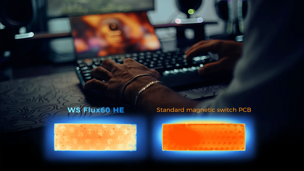 WS Flux60 HEは、0.08msの超低遅延入力に加え、256KHzスキャンレートと8000Hzポーリングレートで入力信号を高精度に同期。 撃ち合い・ストレイフ・高速タップなど、瞬間の操作が重要なシーンでも、遅れを感じにくいキレのあるレスポンスを実現します。
