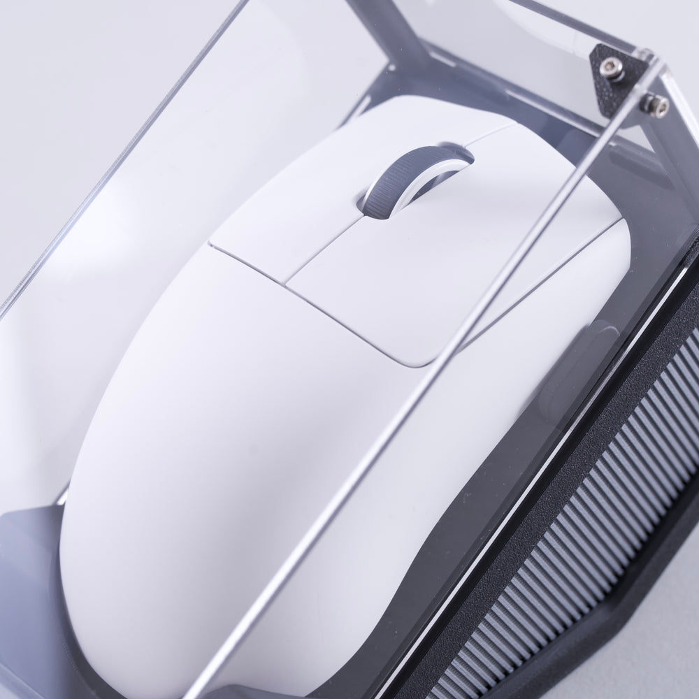 Mouse Display Caseの魅力は、単なる保管用品ではなく、マウスそのものを魅せるディスプレイとして成立していること。透明カバー越しに見えるシルエットやカラーリングが映え、デスク環境の中でしっかり存在感を放ちます。普段から愛用している一台も、コレクションとして保管したい一台も、より美しく引き立ててくれるケースです。