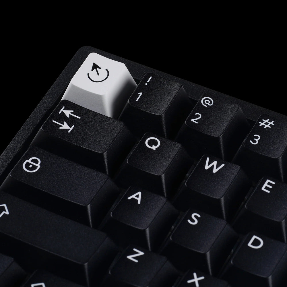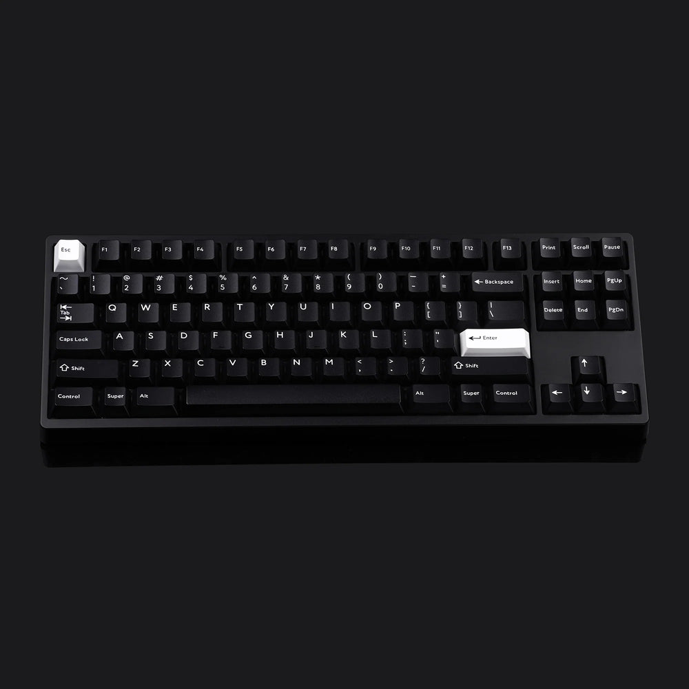 「White on Black」の名の通り、落ち着いた中にも凛とした印象を与えるキーキャップセットです。素材には厚手のPBTを採用し、ダブルショット成形によってレジェンド部分が摩耗しにくく、長期使用でも鮮明な印字を保ちます。